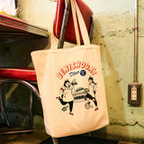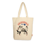 ワークウェアブランドらしく、ホテルマンとウェイトレスの衣装に身に纏ったマユリカと紅しょうがをイメージにしたオリジナルグラフィックをプリントしたトートバッグ。