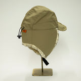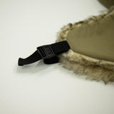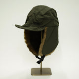 寒冷地用のキャップ。耳当て部分のナイロンのファーは、リアルファーのような色合いで。毛足が長く、デッドエアをため込み保温性を高めています。アウトドアシーンにも普段使いにも◎