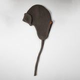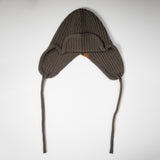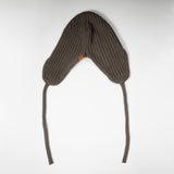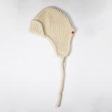 紐を頭の上で結べば、ボンバーキャップ風のアレンジも可能。