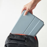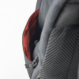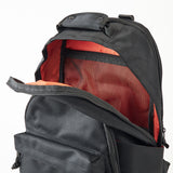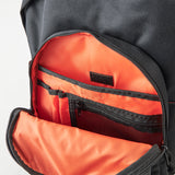 滑り止めラバー素材を背面に施しU字型のショルダーにしたなで肩の方にもフィットする計算された構造。 ショルダーにカラビナ付きのエコバックも付属され、普段使いにもおすすめなリュック。裏地にはブランドカラーのオレンジを使用し中身が確認しやすくストレスなくお使いいただけます。PC収容スペースもあり、機能性抜群です。