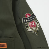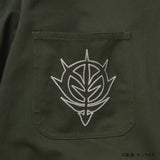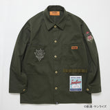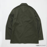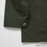 UNIVERSALロゴのドーナツボタンなど細部にまで拘った自信作。右胸ポケットにジオンマークをチェーンステッチ刺繍、左袖にジオン公国軍のムサイ級宇宙軽巡洋艦FARMELのワッペン、左胸ポケットに本企画ならではの、UNIVERSAL OVERALL ×ジオンマークのシリコンラバーネーム、ポケット下にはウェビング(帯)も付き、ミリタリー要素も取り入れたデザインは、 どこかアーバンな雰囲気のある唯一無二なカバーオールです。"