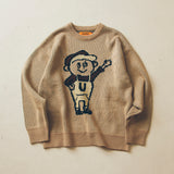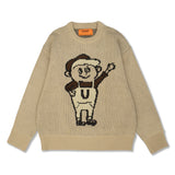 UNIVERSAL OVERALLの大人気マスコットキャラクター【windy JR】を大胆に編んだニット。