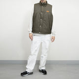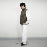 ドローコード付きで、スタイリングに合わせてシルエットを変えれる中綿ベスト。