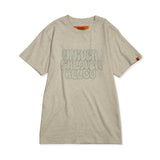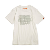 胸元にハンドペイントのグラフィティロゴをプリント。