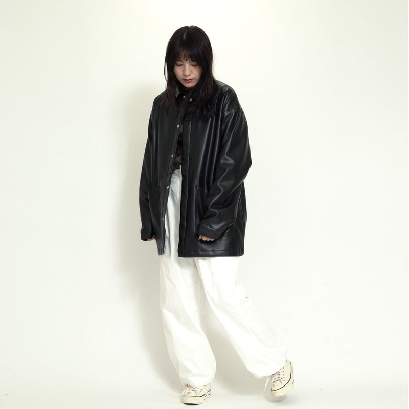 它具有生态皮革特有的柔软性,因此易于穿着,而且宽松、超大,因此易于移动。