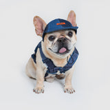 クラシックなデニムの切り替えに、ブルーレザーのディテールをあしらい、上質で洗練された印象に。