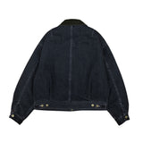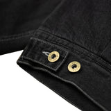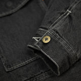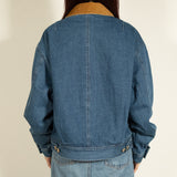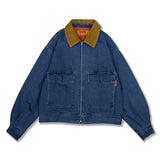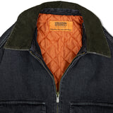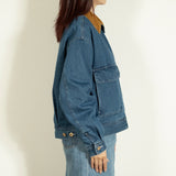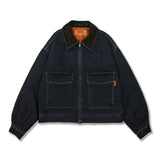 襟にコーデュロイがあしらわれ、ウエストや袖口はボタンで調節可能。